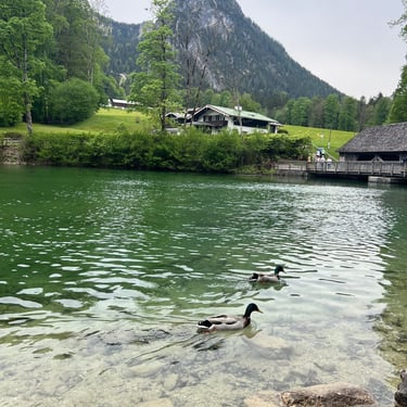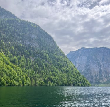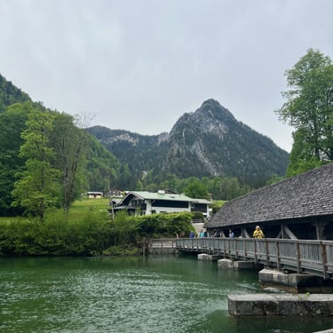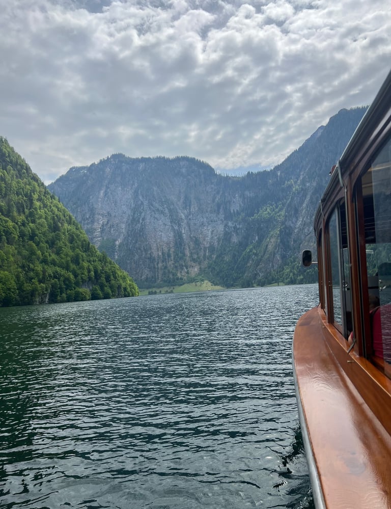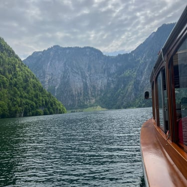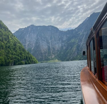 We embarked on a boat ride across the emerald waters of Königssee, reaching the iconic St. Bartholomä church. The serene environment and echoing cliffs provided a memorable experience.