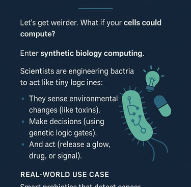 Imagine walking into a lab where test tubes glow, not from chemicals, but from logic gates computing answers. Where strands of DNA store movies, and cells debate among themselves before releasing medicine into your bloodstream. Welcome to the world of biocomputing.